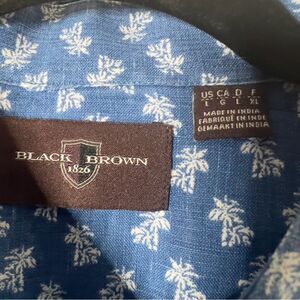 Black Brown 1826 Men’s Long Sleeve 100 % Linen Palm Tree Print Button Up Shirt. Size Large.