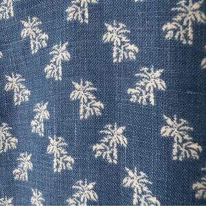 This Sharp shirt for spring and summertime thats made of 100% linen and has a denim blue background with white palm tree print. Perfect shirt for vacation, cruises, or an everyday fun comfortable shirt.