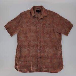 Black Brown 1826 Mens Orange Paisley Ombre Button Down Short Sleeve Linen Dress Shirt with One Front Pocket - Size L - GUC