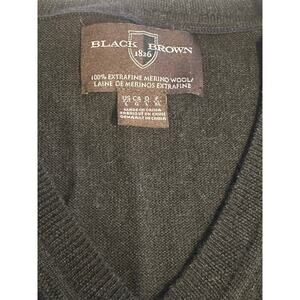 Black Brown 1826 Men's large Merino Wool Sweater black Vest V-Neck Italy Modern preppy business casual evening winter fall cozy cabin