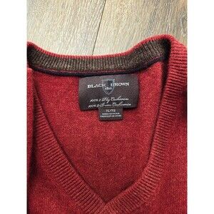 Black Brown 2 Ply Cashmere Sweater Men's XL V-Neck Red Long Sleeve Luxury