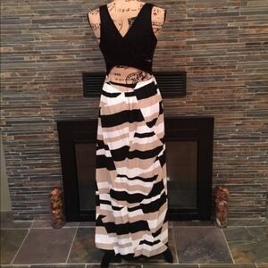 Black Brown Geometric Criss Cross Back Maxi Dress BB193