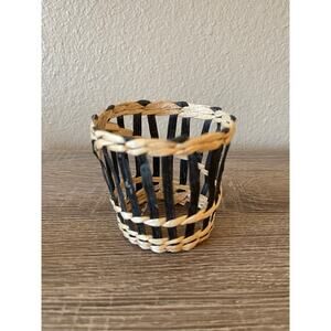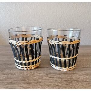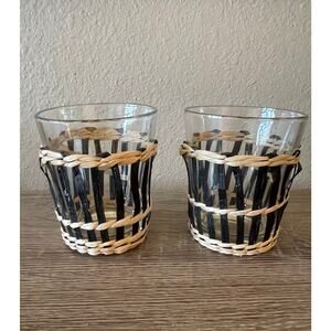 Black & Brown Jute Wicker Whiskey Glass 2 Piece Set 10 oz