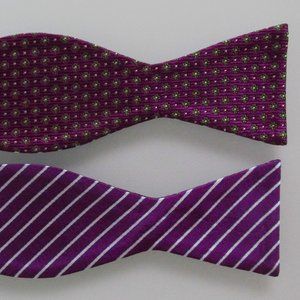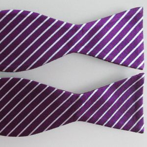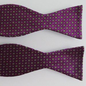 Description: Up for sale is a Black Brown reversible self-tie butterfly end silk bow tie. This bow tie is made of 100% silk fabric. The tie has reversible patterns in small print & stripes. Please see the photos for a more accurate depiction of color and patterns. The bow tie width is 2 1/8".The bow tie is in excellent condition.