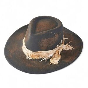 Black & Brown Vintage Inspired Distressed Fabric Band Rustic Western Fedora Hat