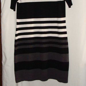 Black Brown & White STRIPE Short Sleeve SWEATER DRESS Sz XL by ALLISON BRITTNEY