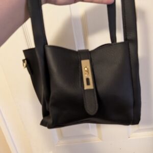 Black Bucket Handbag includes inside pouch and detachable strap