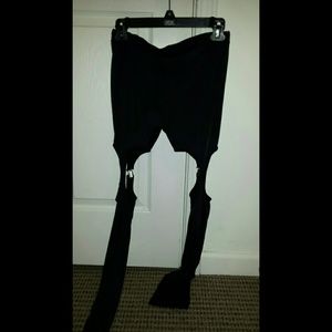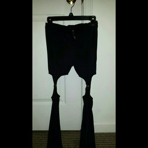 Black Leggings with opening in the thigh then a buckle to the rest of the Leggings. Only worn once