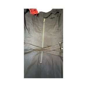 Discover your bold style with the Tripp NYC Vintage Bondage Dress, available in sizes Small to Large for $80. This striking black dress features a halter design, adjustable overall buckle straps, and a front zipper. Its numerous silver hardware accents and strap details create an edgy, standout look perfect for making a statement.