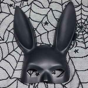 Chic black bunny mask. Perfect for costumes or parties. Sleek and stylish design. Material is plastic.