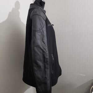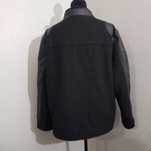 Black Burks Bay Men's Leather and Wool Sleeve Jacket and Sz Large