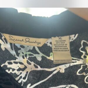 Black Burn Out Floral Velvet Button-up Blouse Silk-blend Long-sleeved XL