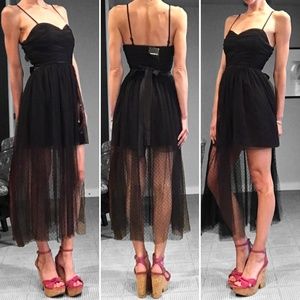 Black Bustier Mesh Black Midi Dress Party Collection Formal Satin Bow Prom Event