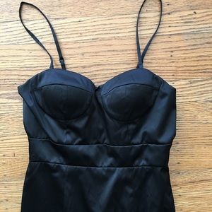 Satin style mini. Easy short LBD for going out. Removable straps. Size says Medium but runs small. Never worn.