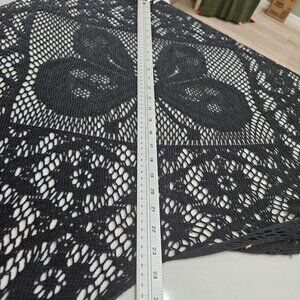 Black Butterfly Shawl Wrap Black Floral Lace Knit Fringe Boho OS
