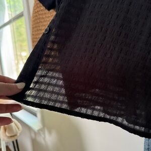 NWT, never worn ✨ So many ways to style this top! Black crinkle button down blouse, boxy fit, cuffed sleeves. Good capsule wardrobe piece. Minimalist or even edgy. Cute open with a cropped tank, buttoned half tucked in mom jeans, tie it up.
