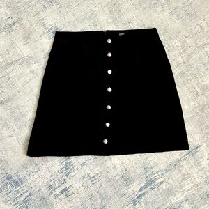 Chic and versatile black skirt with stylish button design. Features 2 front pockets. Hidden zipper and hook and eye closure. Lined. Perfect for any occasion. Skirt size MEDIUM (28” waist) Length 16.75“ pockets 5.75” long 5” wide. BIN 1