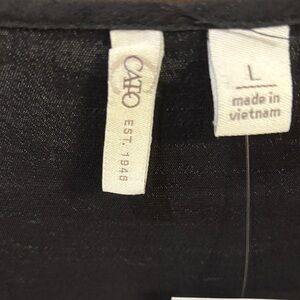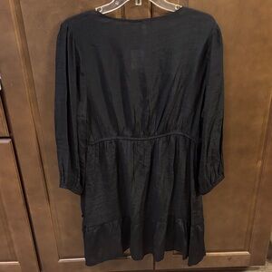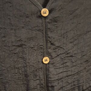 Chic sheer black tunic with stylish ruffles. Great with leggings.