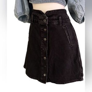 Stylish black denim skirt with button-front design. Perfect for casual outings.