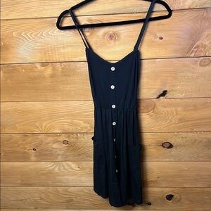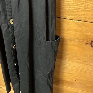 Black Button-Front Dress Womens pockets Midi Adjustable Straps Medium sleeveless