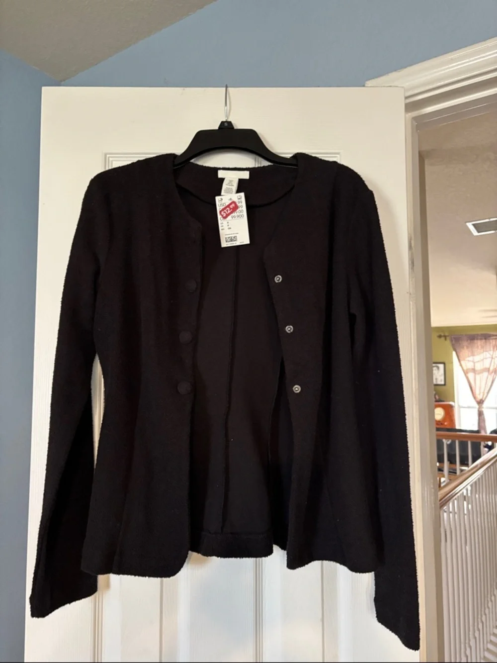 Classic black jacket with long sleeves. Snap-front closure. Versatile wardrobe staple. Tagged and ready to wear. Purchased and but just never wore it.