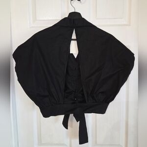 Stylish black button-up crop top with tie detail.