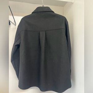 Stylish black button-up jacket with front pockets. Perfect for layering.