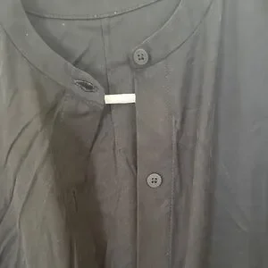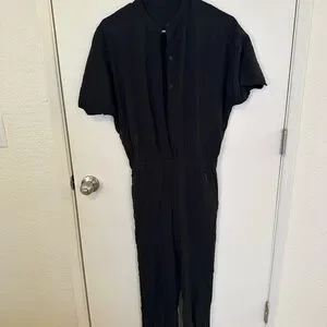 Stylish black button-up jump-suit. Stretchy waistband. Full length. Sleeves are very flattering.
