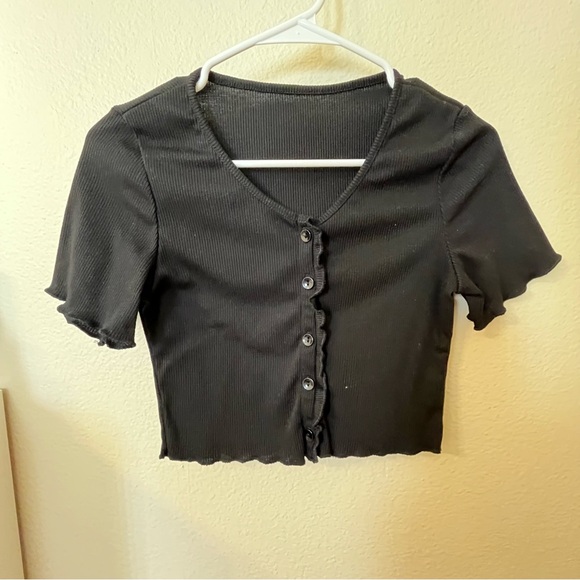 Black Button-Up Ribbed Top