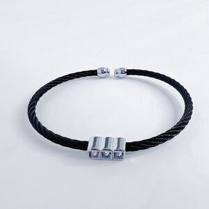 Black Cable Bracelet Braided Silver Rhinestone Charm Adjustable