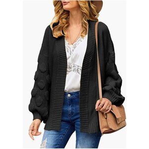 Black Cable Knit Chunky Pom Pom Open Front Oversized Sweater Cardigan Coat