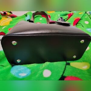 Sleek and stylish black leather tote bag by . Perfect for any occasion.