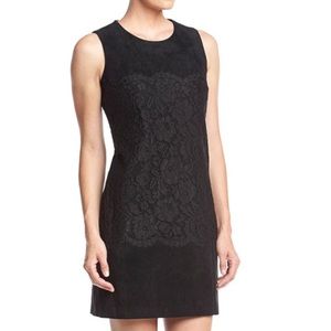 Black Calvin Klein Faux Suede Lace Overlay Dress