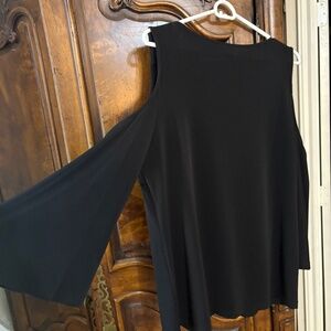 Calvin Klein “cold shoulder” blouse. Flowing sleeves. Embellished on top of shoulders.
