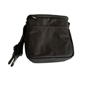 This compact black camera bag is designed for photographers on the go, featuring a durable synthetic fabric that ensures protection for your gear. Its adjustable strap offers versatile carrying options, making it a practical choice for any photography enthusiast.