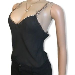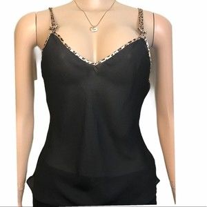 Black Cami Top Black Sheer V neck animal print trimmed bows Detailing size M