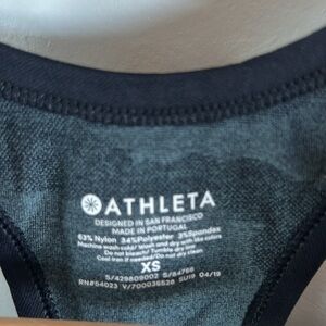 Stylish black camouflage tank top with a racerback design. Perfect for casual wear or workouts.