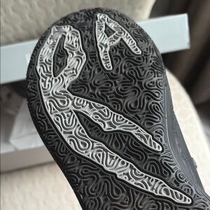 Kyrie Irving sneakers like new Sleek black camouflage athletic shoes with a modern design.