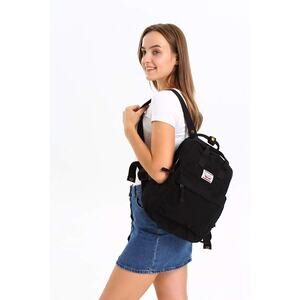 Black Canvas DogBrut Backpack with Front Zip Pocket Casual Style Lightweight