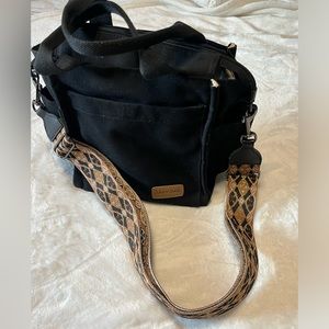 Black Canvas crossbody tote bag. Cloud music crossbody shoulder strap. Double strap