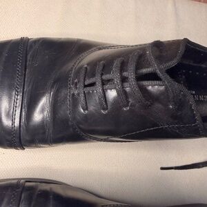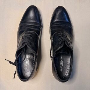 Black Leather Kenneth Cole Cap Toe Oxfords.