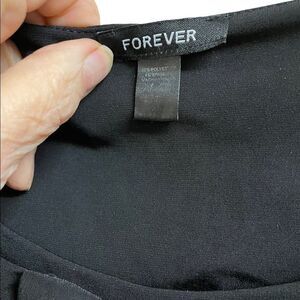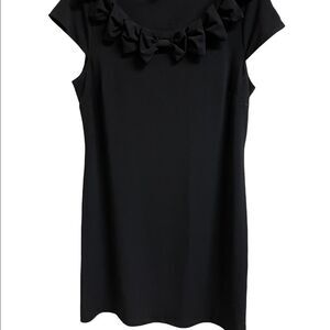 Black Cap Sleeve Dress with Bow Neckline Embellishments by Forever