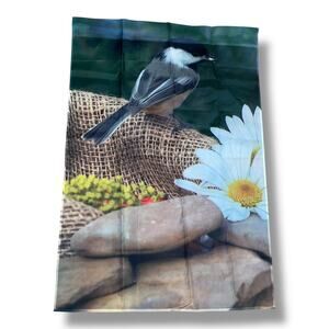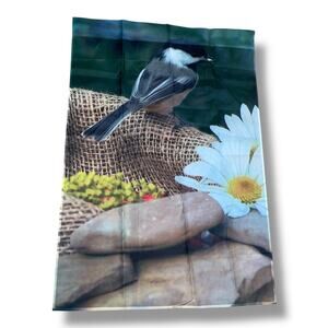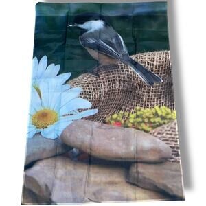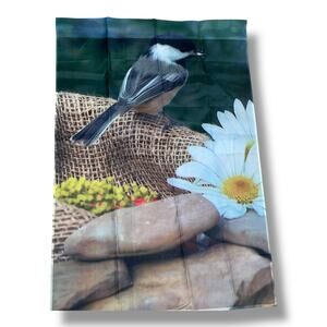 Black Capped Chickadee Bird Garden Flag Burlap Rock Daisy Flower Yard Decor ~27"W x 41"H