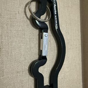 Unique car-shaped black keychain with silver-tone metal spring clip and a built-in bottle opener. Features the “BSG America Bel Air Auto Auction” branding — a perfect piece for collectors or mechanics. Compact, durable, and practical!