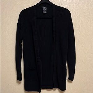 Elegant black cardigan sweater perfect for layering. Soft and comfortable for everyday wear.