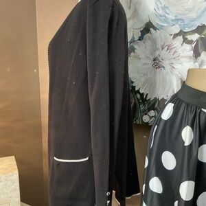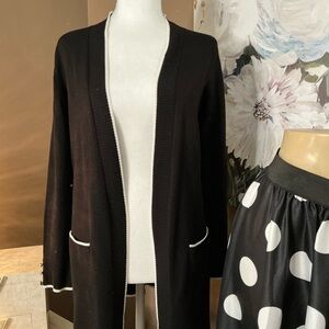 Black Cardigan Sweater With Accents of White Trim by 89th & Madison