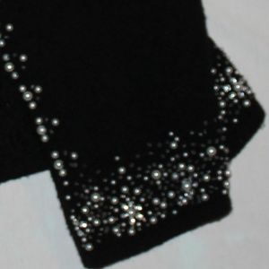 A cute and soft black cardigan with pearls on the cuffs and the bottom