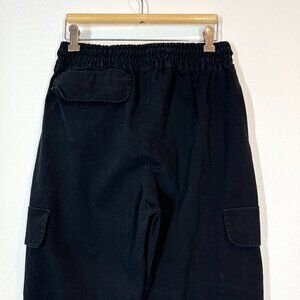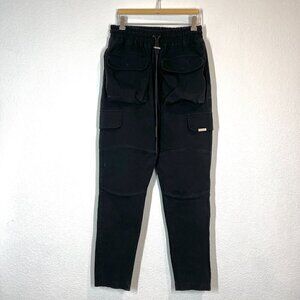 Represent Mens Cargo Pants Black. Pull on styling with drawstring waist.
