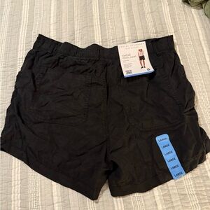 These black cargo shorts offer a classic fit with a structured design, perfect for a casual yet polished look. The mid-thigh length and crisp fabric make them versatile for various occasions.