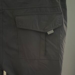 These black cargo shorts are crafted from a technical fabric, providing comfort and flexibility for outdoor adventures. The knee-length design ensures ease of movement, making them perfect for casual outings or active pursuits.